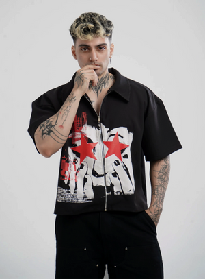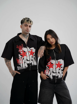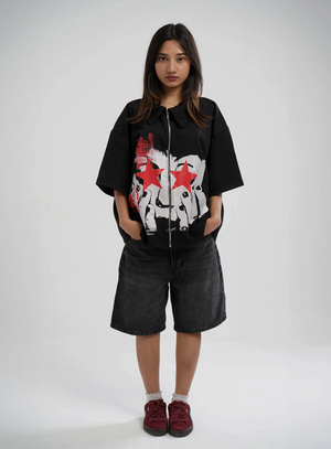 This boxy shirt is more than just a piece of clothing — it’s a statement. Born from the pulse of rebellion and quiet defiance, the SHUT UP & STARE Edition captures the raw energy of a silent riot. It’s for those who don’t need to shout to be heard, who challenge the noise with their presence alone.
